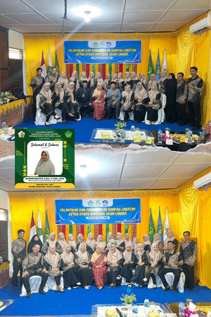Pelantikan dan Pengangkatan oleh Bapak Ketua Yayasan Dayah Bustanul Ulum Drs. H. Faisal Hasan Yang disaksikan oleh Pengukuh sumpah dari KUA Langsa Kota Bapak Ierham Zakaria S.Sos.I, dan Selain itu Acara Pelantikan dan Pengambilan Sumpah di hadiri oleh Dewan Pembina dan Pengawas Yayasan Dayah Bustanul Ulum, Kapolsek Langsa Kota, Direktur Rumah Sakit Umum Daerah Langsa, Direktur Rumah Sakit Cut Mutia Langsa, Pimpinan Bank Aceh serta Staf dan Karyawan STIKes Bustanul Ulum Langsa serta Perwakilan dari Mahasiswa/i.