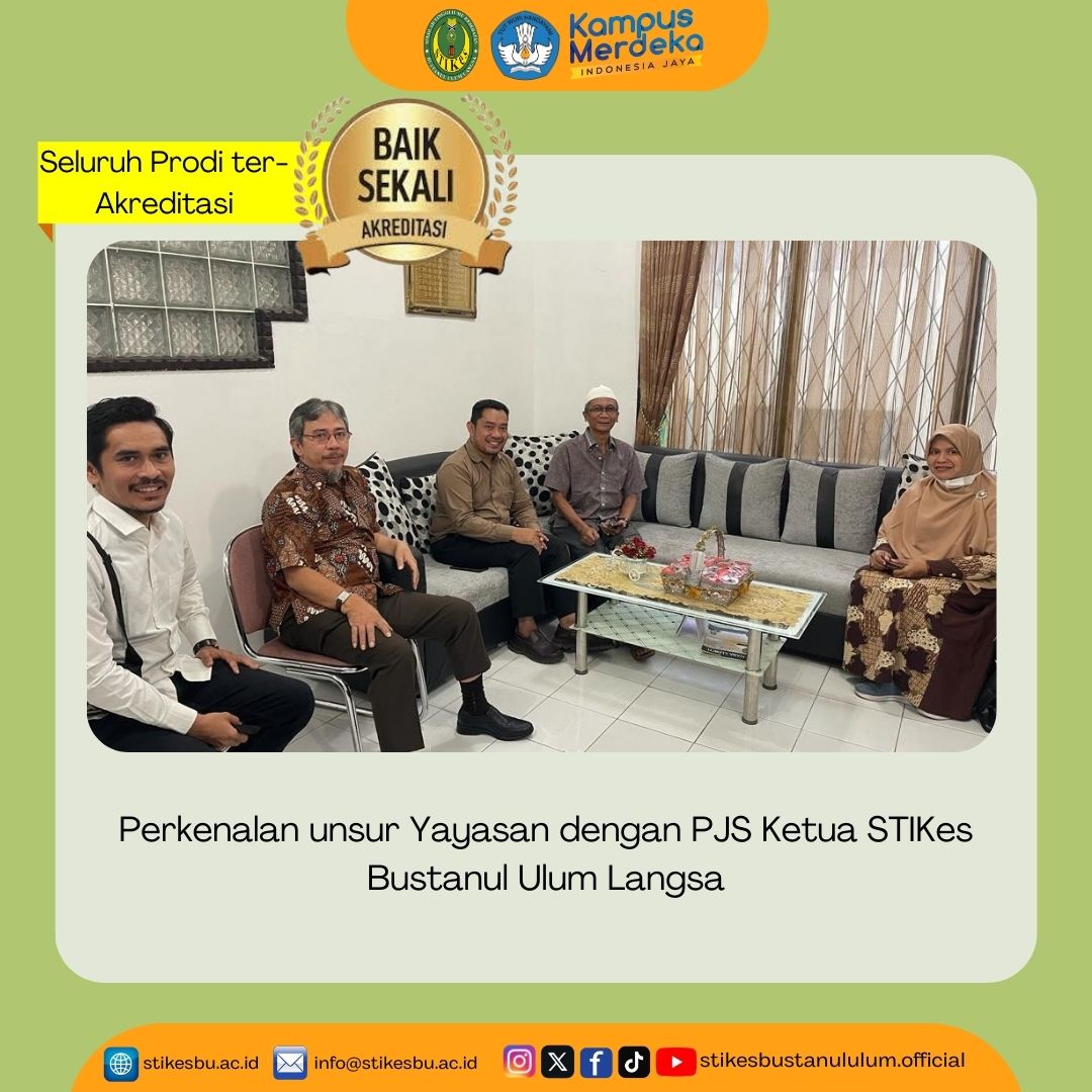 Perkenalan unsur Yayasan dengan bu Bdn. Nurhidayati,. S.Sos,. S.Keb,. M.Ph sebagai PJSKetua STIKes Bustanul Ulum Langsa. Ramah tamah, diskusi beberapa hal penting menyakut dengan normalisasi kembali STIKes Bustanul Ulum Langsa. Pjs. Ketua STIKes menyampaikan bahwa agenda rapat dan pertemuan serta diskusi hari in dengan tenaga dosen, tendik dan mahasiswa