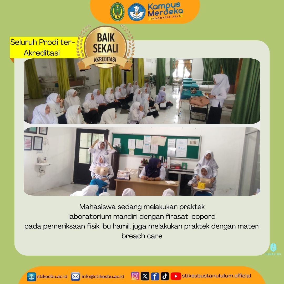 Mahasiswa sedang melakukan praktek laboratorium mandiri dengan firasat leopard pada pemeriksaan fisik ibu hamil. juga melakukan praktek dengan materi breach care