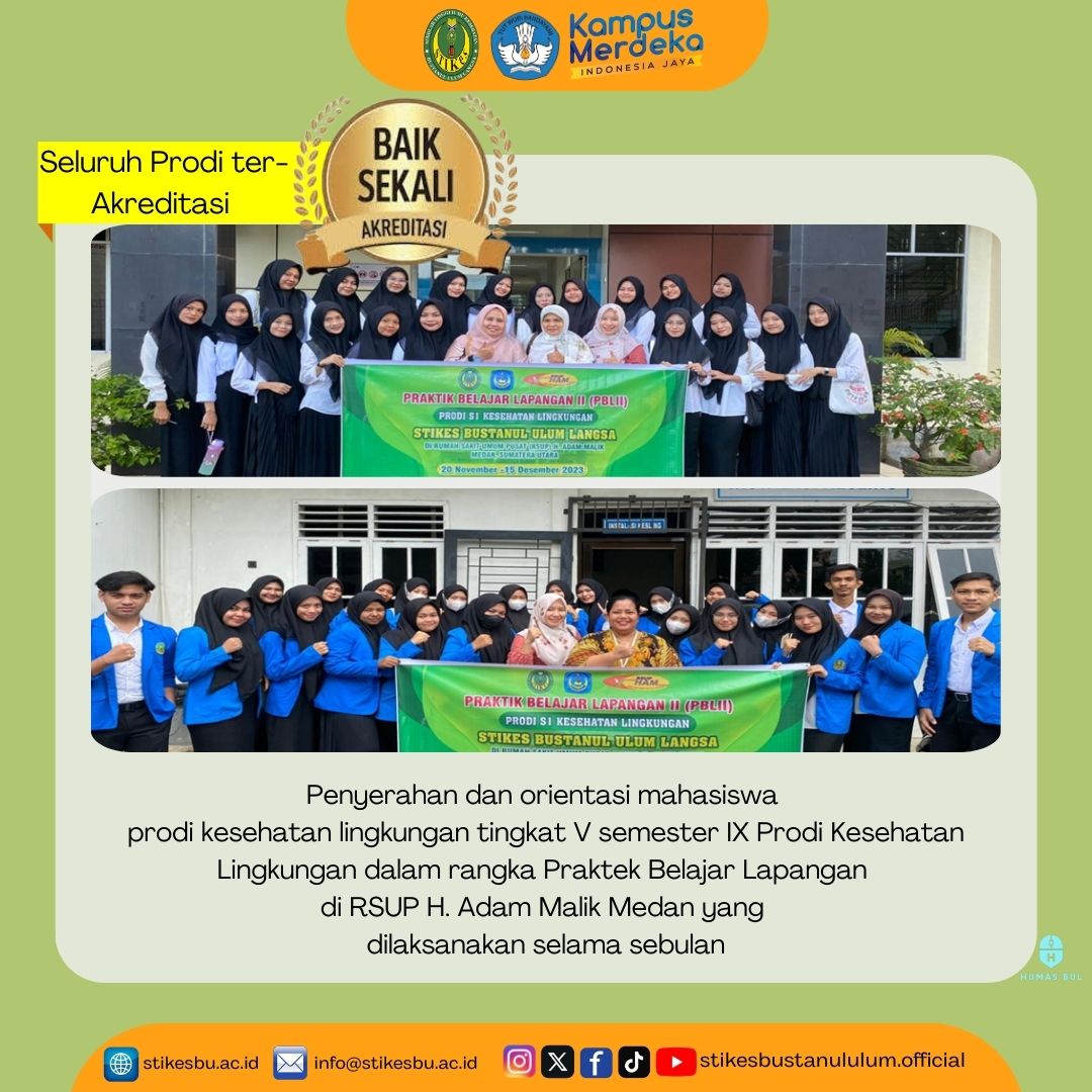 Kegiatan penyerahan dan orientasi mahasiswa tingkat V semester IX Prodi Kesehatan Lingkungan dalam rangka Praktek Belajar Lapangan di RSUP H. Adam Malik Medan yang dilaksanakan selama sebulan