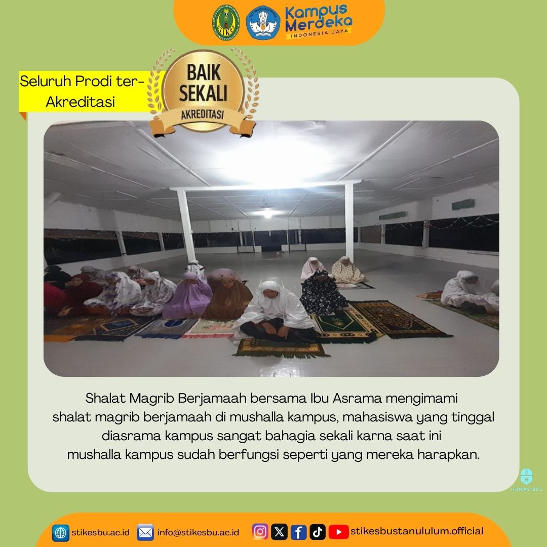 Kepala Asrama mengimami shalat magrib berjamaah di mushalla kampus, mhasiswa yang tinggal diasrama kampus sangat bahagia sekali karna saat ini mushalla kampus sudah berfungsi seperti yang mereka harapkan.