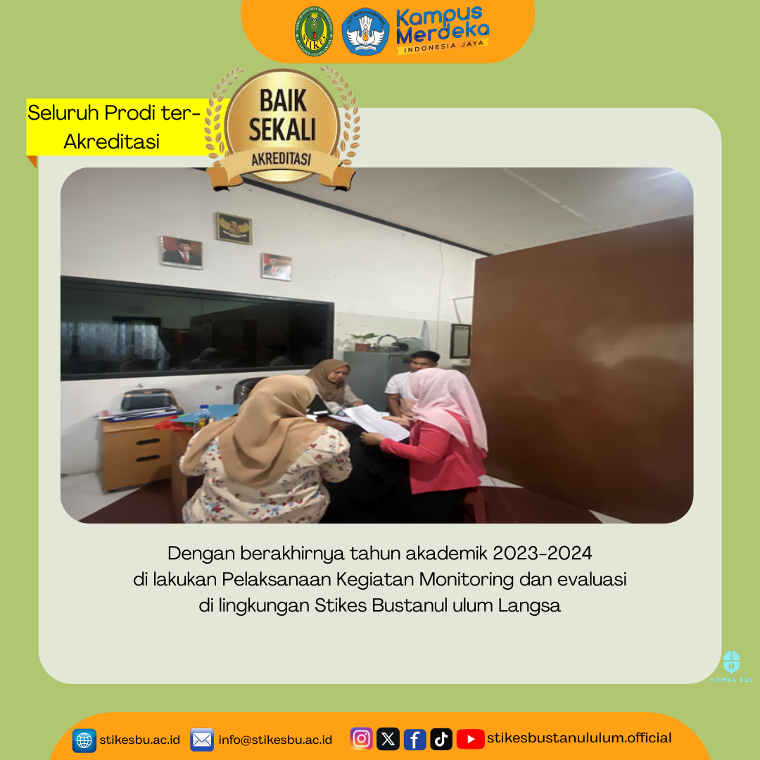 Dengan berakhirnya tahun akademik 2023-2024 di lakukan Pelaksanaan Kegiatan Monitoring dan evaluasi di lingkungan Stikes Bustanul ulum Langsa