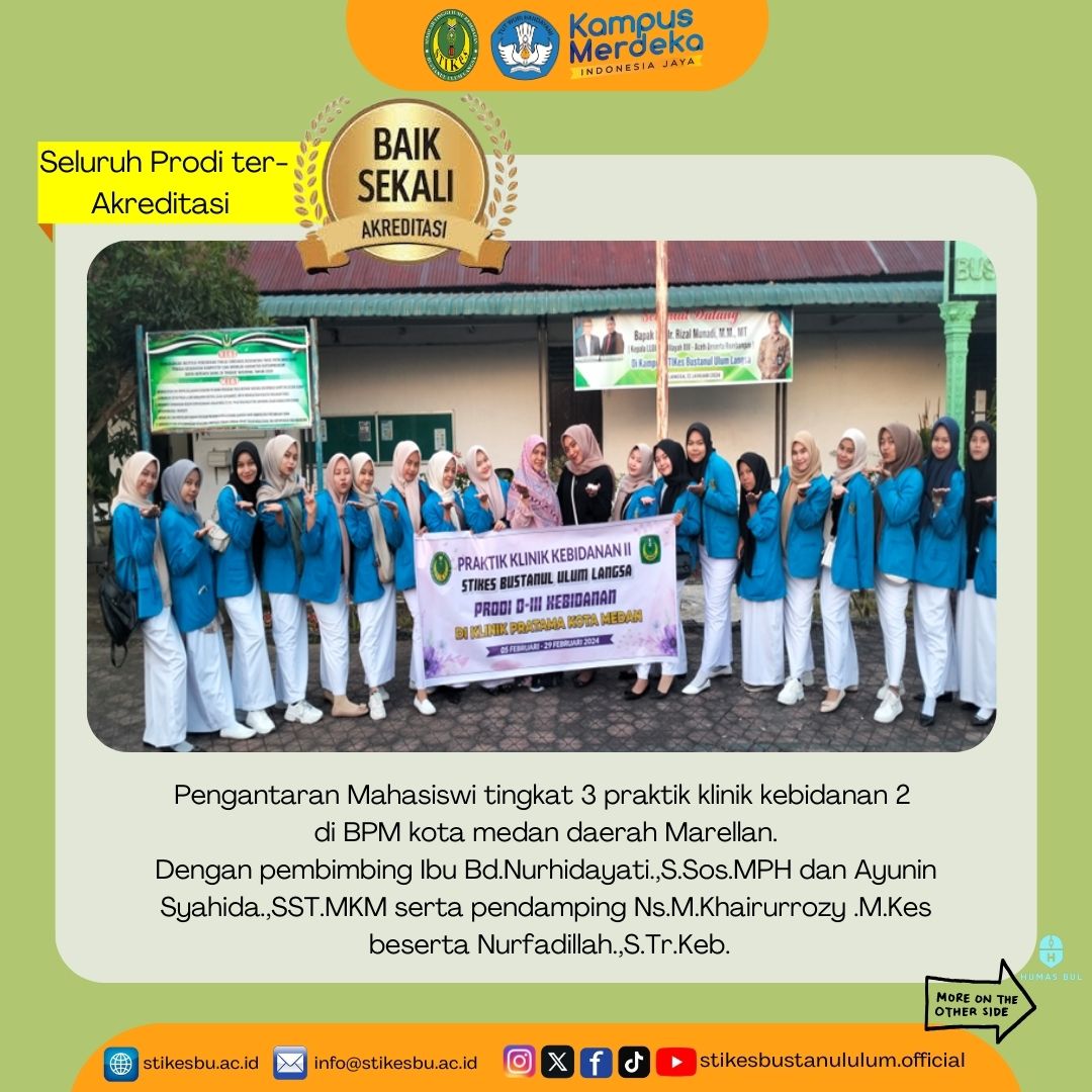 Pengantaran Mahasiswi tingkat 3 praktik klinik kebidanan 2 di BPM kota medan daerah Marellan. Dengan pembimbing Ibu Bd.Nurhidayati.,S.Sos.MPH dan Ayunin Syahida.,SST.MKM serta pendamping Ns.M.Khairurrozy .M.Kes beserta Nurfadillah.,S.Tr.Keb.
