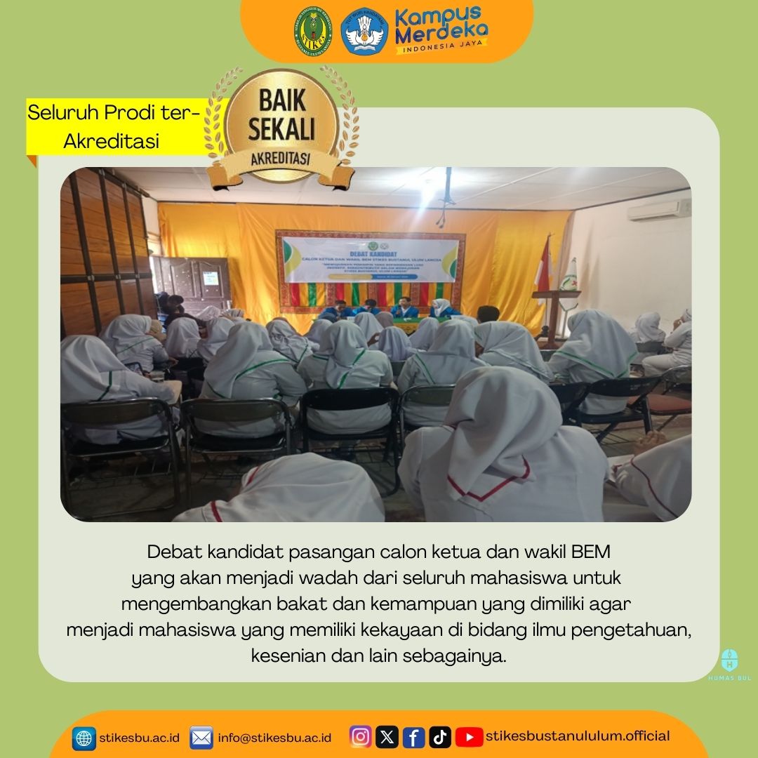 Debat kandidat pasangan calon ketua dan wakil BEM yang akan menjadi wadah dari seluruh mahasiswa untuk mengembangkan bakat dan kemampuan yang dimiliki agar menjadi mahasiswa yang memiliki kekayaan di bidang ilmu pengetahuan, kesenian dan lain sebagainya.