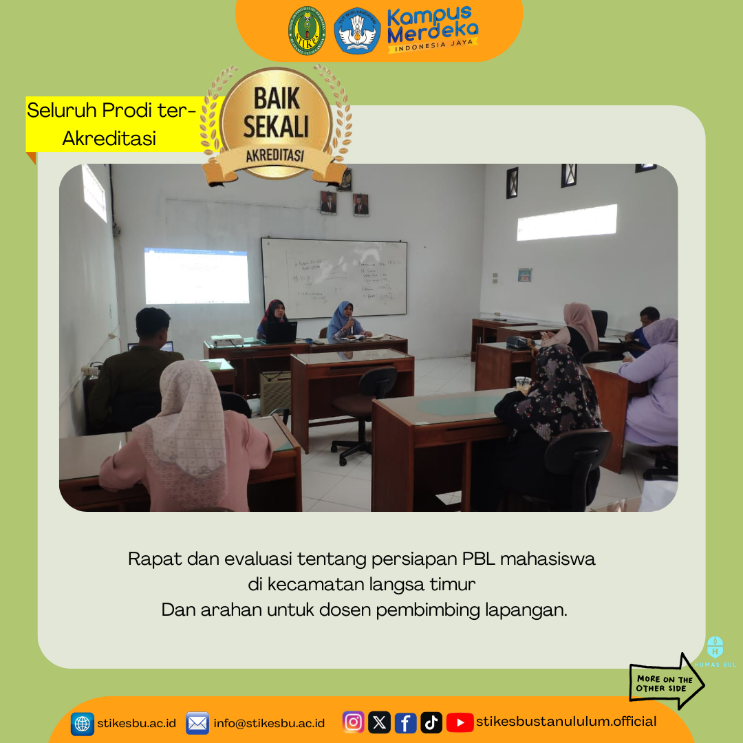 Rapat dan evaluasi tentang persiapan PBL mahasiswa di kecamatan langsa timur Dan arahan untuk dosen pembimbing lapangan.