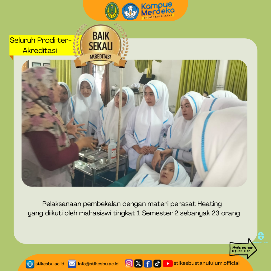 Langsa – Rabu 3 Juli 2024 Pelaksanaan pembekalan materi hari pertama dengan perasat Heating dengan jumlah mahasiswi tingkat 1 semester 2 sebanyak 23 orang.