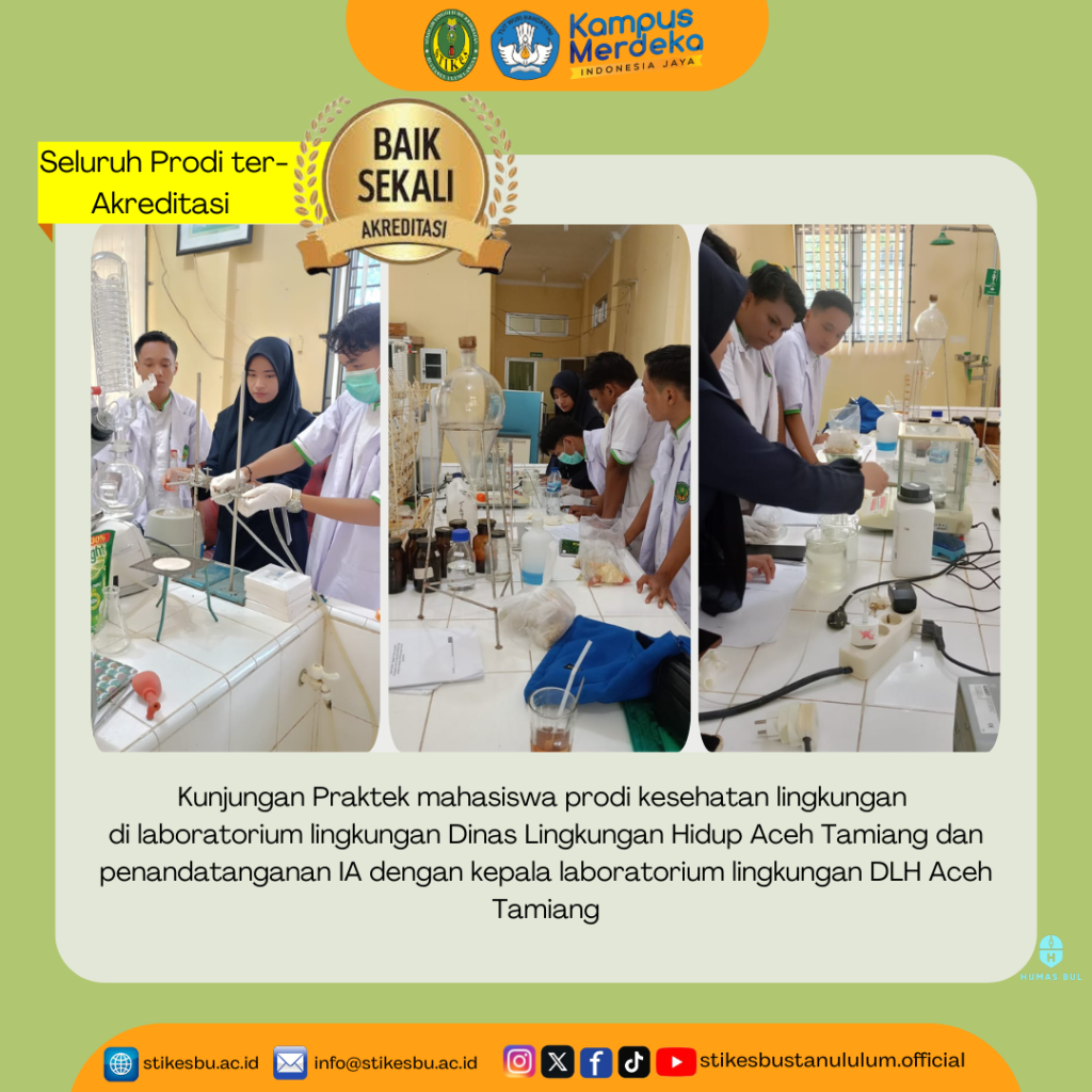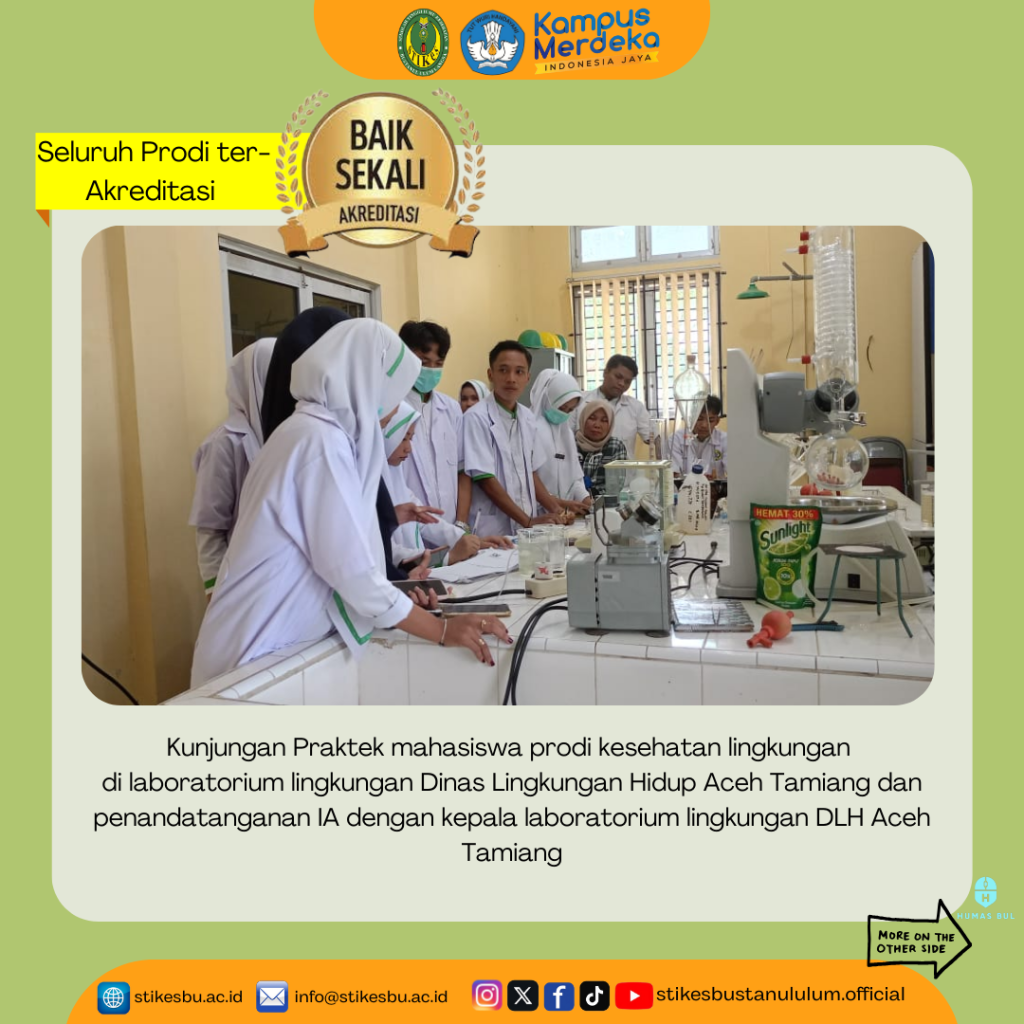 Dengan jumlah mahasiswa sebanyak 12 orang dibawah bimbingan clinical instruktur ibu Intan wahyuni, S.Si sekaligus sebagai kepala laboratorium lingkungan dinas lingkungan hidup Aceh Tamiang dan dibantu 1 orang tenaga analis. Pemeriksaan yang dilakukan oleh para mahasiswa/i pada hari ini adalah pemeriksaan lemak dan minyak pada air sungai.