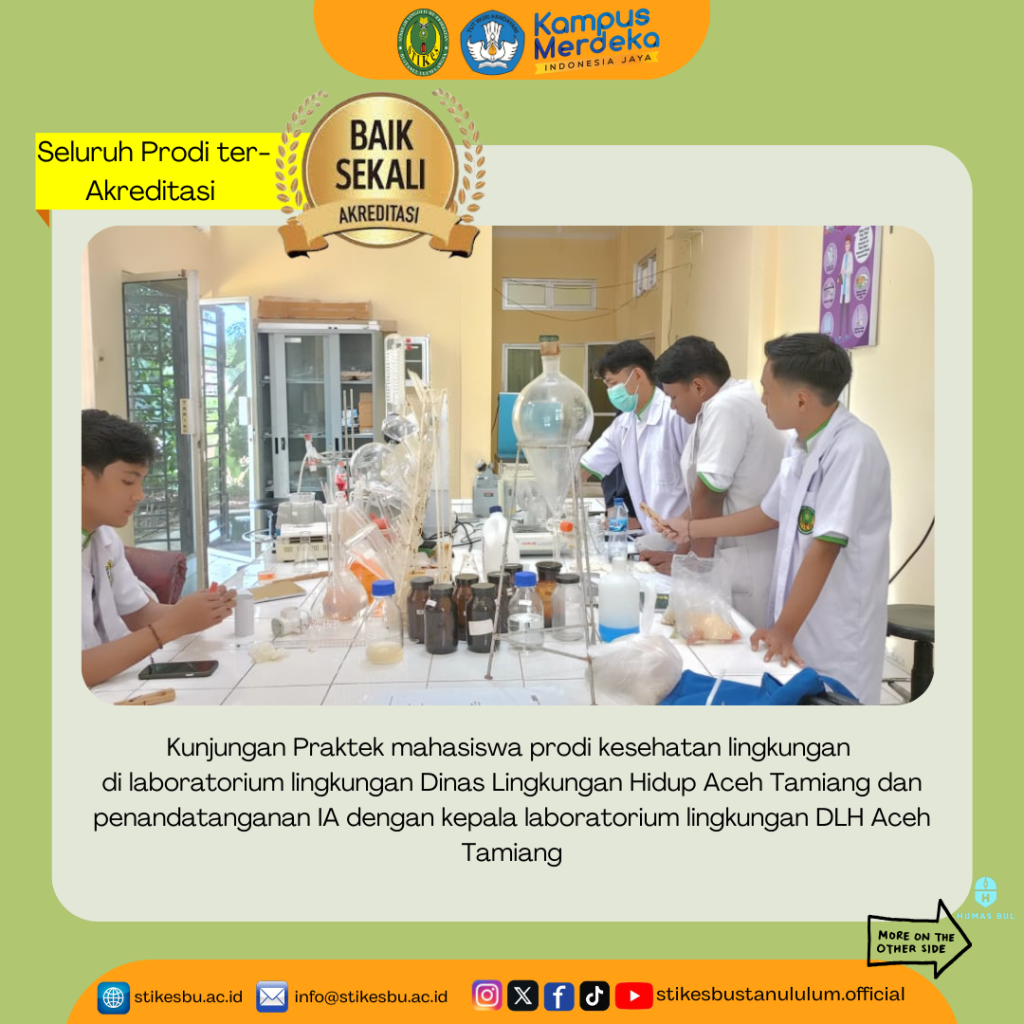 Aceh Tamiang – Kamis, 4 Juli 2024 dilaksanakan kunjungan bimbingan praktek mahasiswa prodi kesehatan lingkungan TK III Semester IV di laboratorium lingkungan dinas lingkungan hidup Aceh Tamiang.