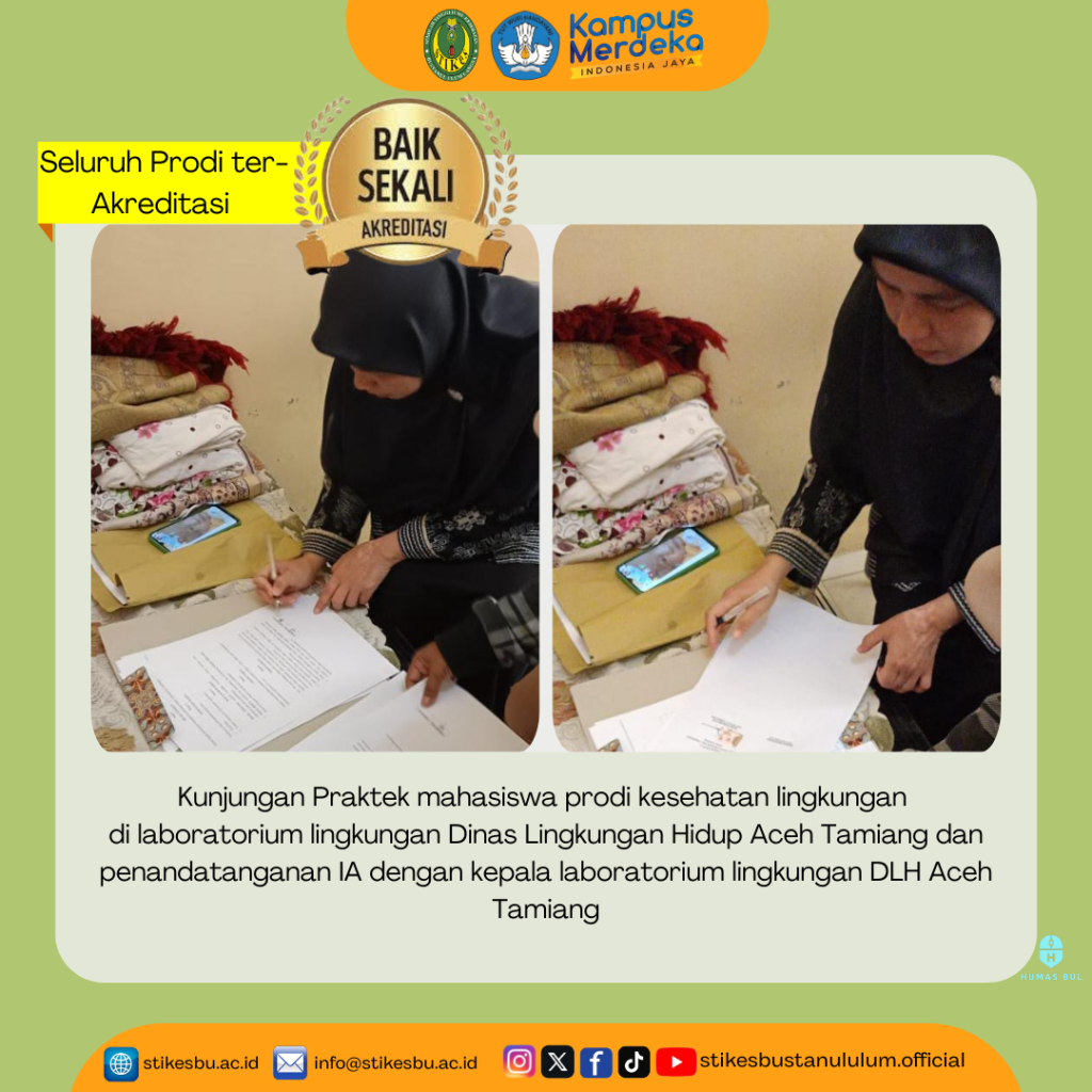 Pada hari ini juga dilakukan penanda tanganan Implementation Agreement antara ketua prodi S1 Kesehatan lingkungan STIKes Bustanul Ulum Langsa dengan kepala laboratorium lingkungan dinas lingkungan hidup Aceh Tamiang.