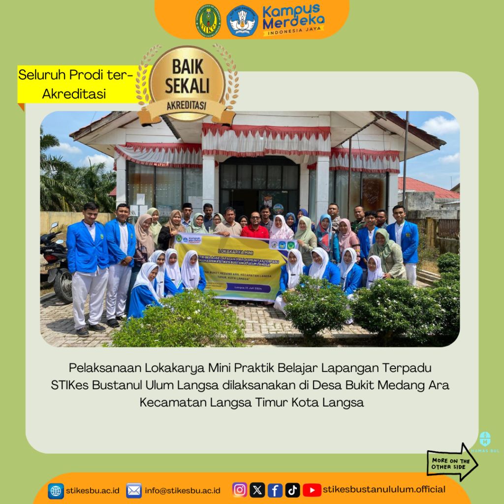 Langsa – Dalam pelaksanaan Praktik Belajar Lapangan Terpadu yang terdiri dari program studi D3 Kebidanan, S1 Kesehatan lingkungan , dan S1 Administrasi Rumah Sakit Mahasiswa/i STIKes Bustanul Ulum Langsa telah menyukseskan forum pertemuan yang merupakan penerapan dari manajemen penggerakan pelaksanaan di Desa Bukit Medang Ara Kecamatan Langsa Timur Kota Langsa pada tanggal 13 Juli 2024.