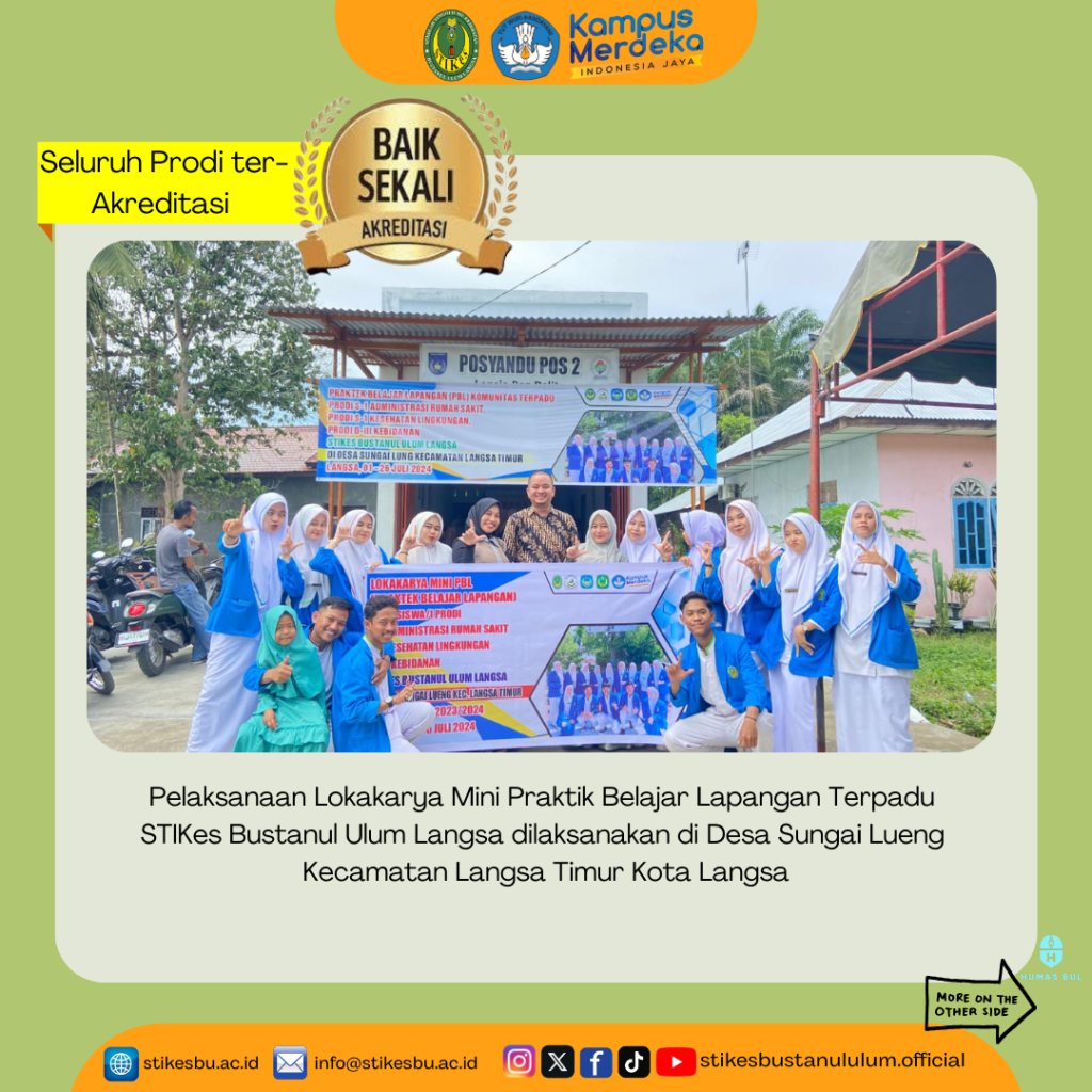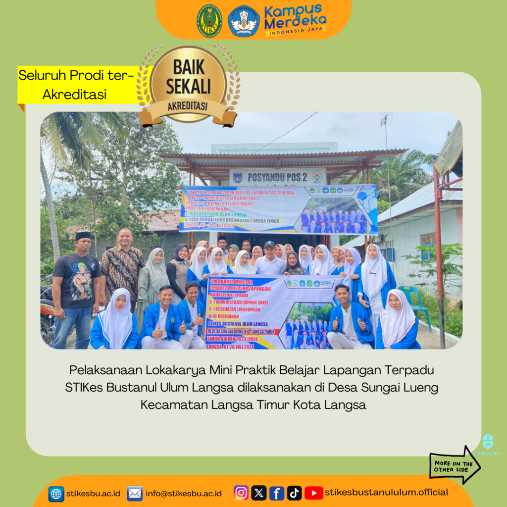 Langsa – Sabtu 13 Juli 2024 Pelaksanaan Loka Karya Mini Desa Sungai Lung kec. Langsa Timur Kota Langsa oleh mahasiswa/i STIKes Bustanul Ulum Langsa di bawah bimbingan bpk Ns.Muhammad Khairurrozy.M.Kes, Intan Bahrina, ST., MT dan Ibu Nanda Mirani, MKM